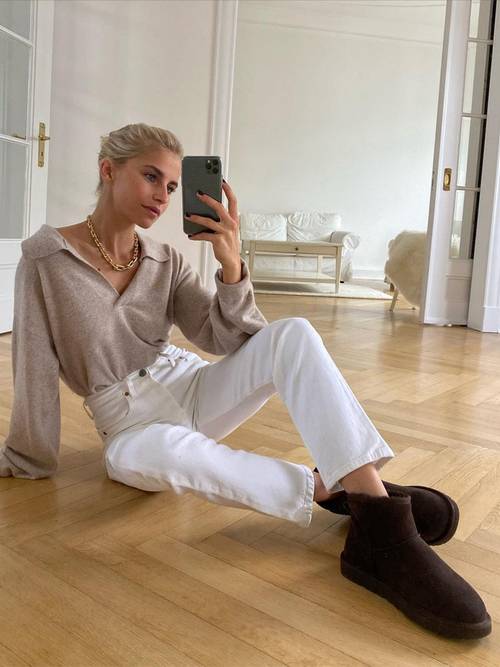 Off course this time they are not paired with velour tracksuits and denim mini skirts. We wear them with relaxed jeans, oversized blazers and coats for a cozy city look. How cool is Elsa Hosk’s outft?
